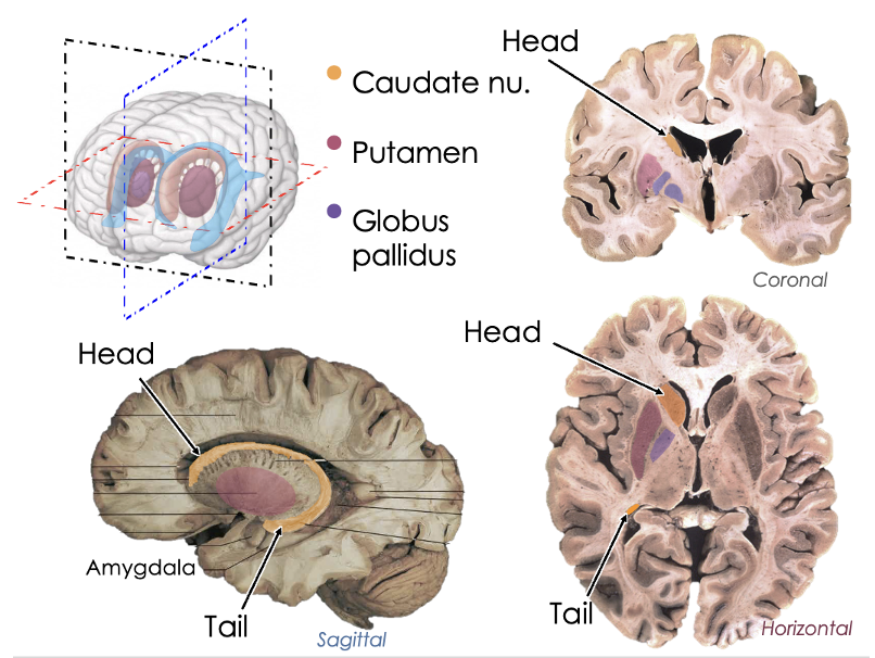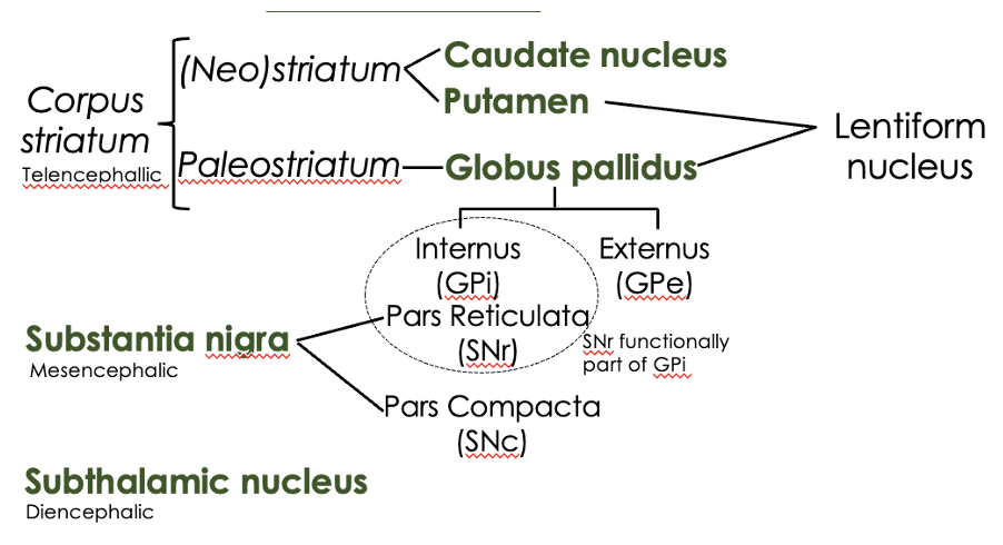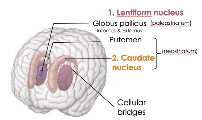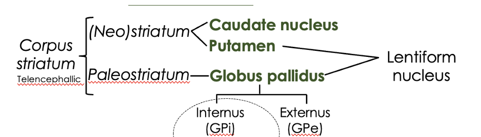 corpus striatum = neostriatum + paleostriatum