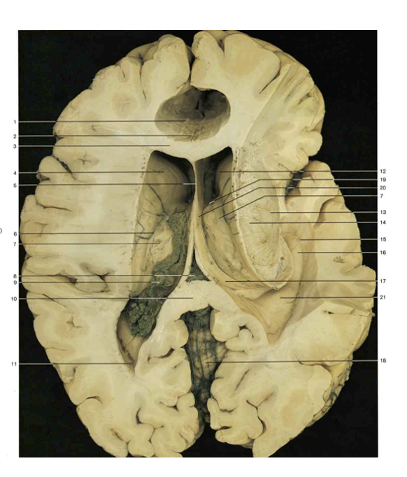 What is represented by 4, 5, 13 and 14 in this superior cadaver view?