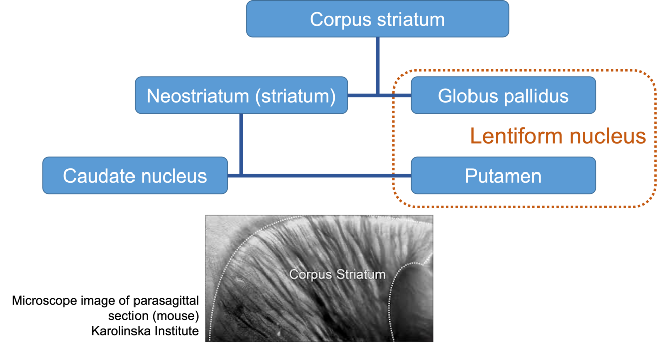 (Olfactory tubercle) – partly in temporal lobe, sensory, attention, reward