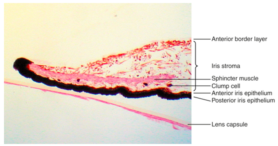 Onde é a região mais espessa da íris?