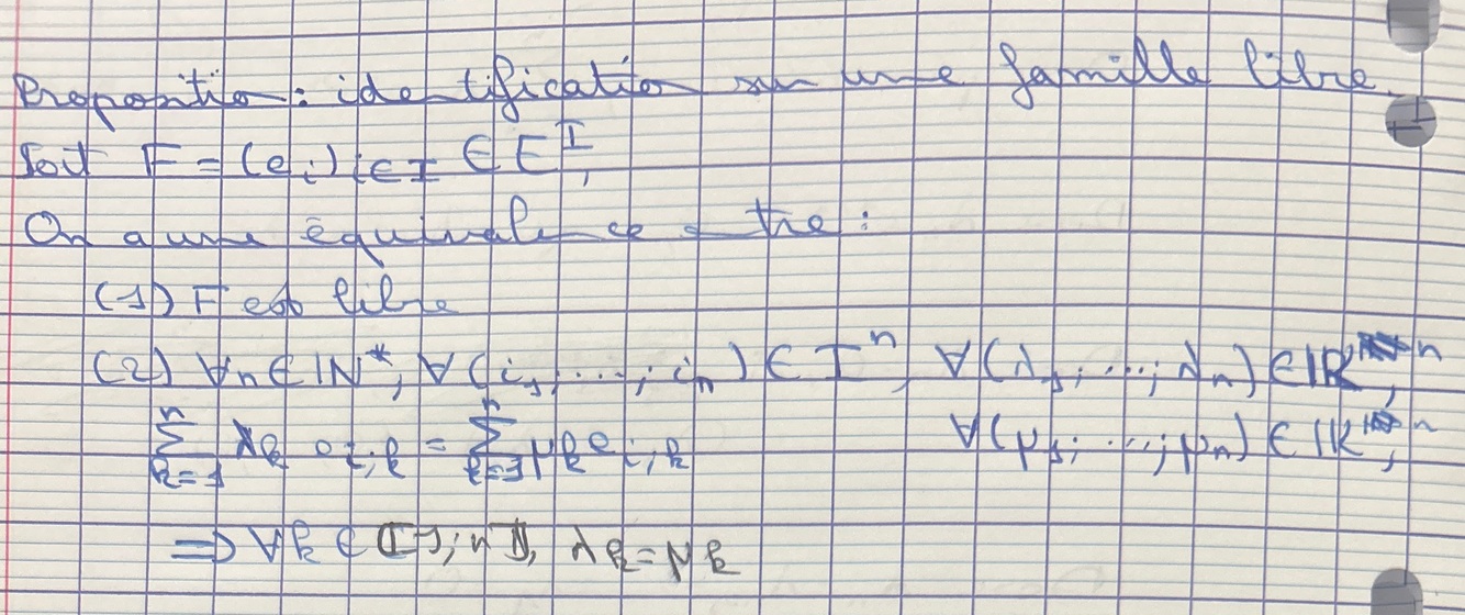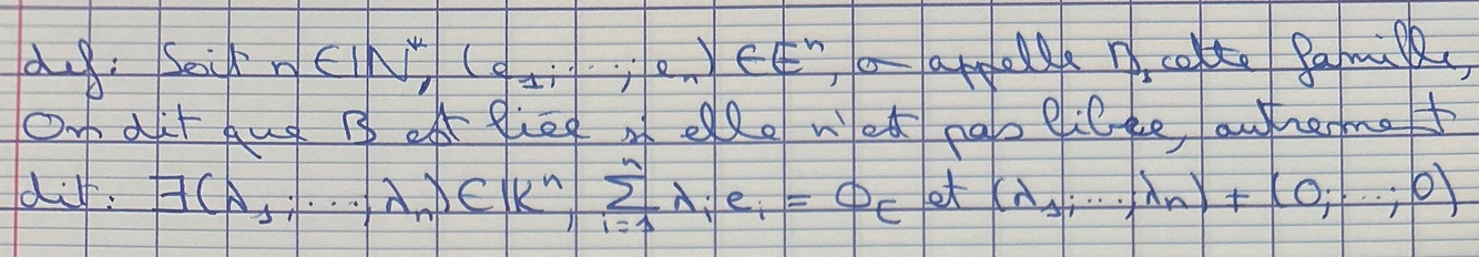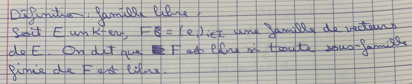 Soit x€E, que signifie-t-il de dire que la famille (x) est libre ?