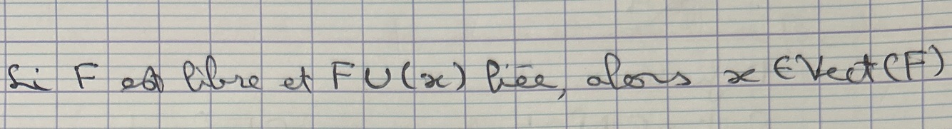Soit F une famille libre de E et x€E, que peut-on dire si FU(x) est liée ?