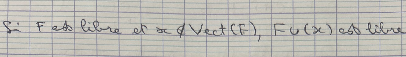 Soit F une famille libre de E, et x qui n’appartient pas à Vect(F), que peut-on dire de FU(x) ?