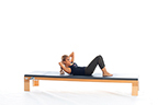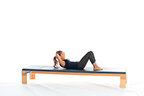 Set Up: Lie on back, hands interlaced behind head, legs straight and together, toes pointed