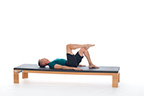 Exhale: reach one leg to the mat, bring the other leg toward the chest (2 pulses - pull, pull)