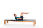 Set up: Lying supine, legs in tabletop position (hips and knees at 90 degrees), arms overhead. Exhale and lift arms, head and chest, straighten legs (to the appropriate height for each individual) and lower arms to the sides of the body, parallel to the mat.