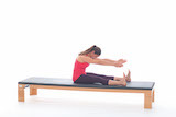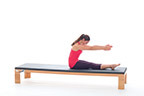 Set up: Sitting upright, arms reaching forward in line with shoulders, legs lifted, knees bent, shins parallel to floor (shoulders down), back in straight extended position - not rounded. Upper back open, lower abs pulling in.