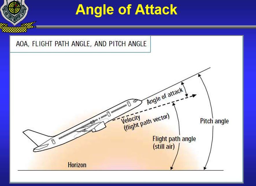 Pitch angle, or attitude, is the angle between the longitudinal axis and the horizon
