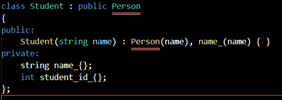 Write base class name followed by a parenthetical list of arguments to be passed to constructor.