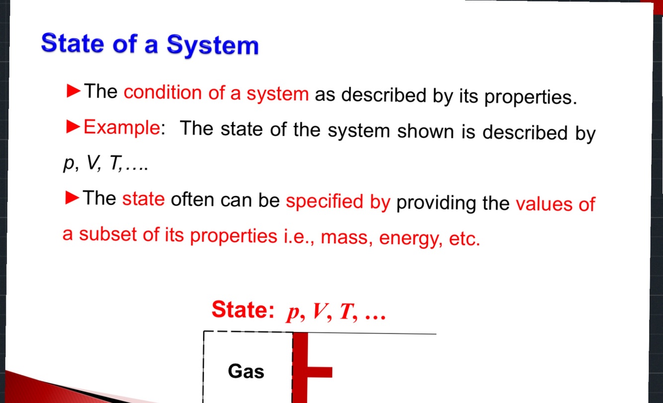 The Condition of a system described by numerical values of its properties
