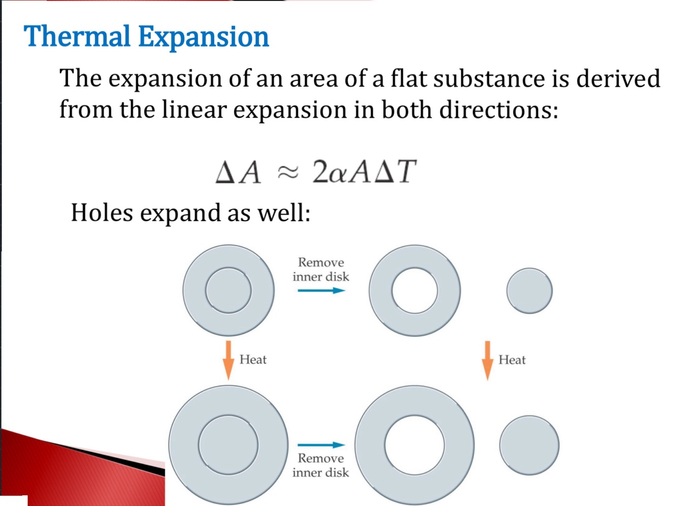 We derive the change in area by the sum of the linear expansion in the X and Y directions