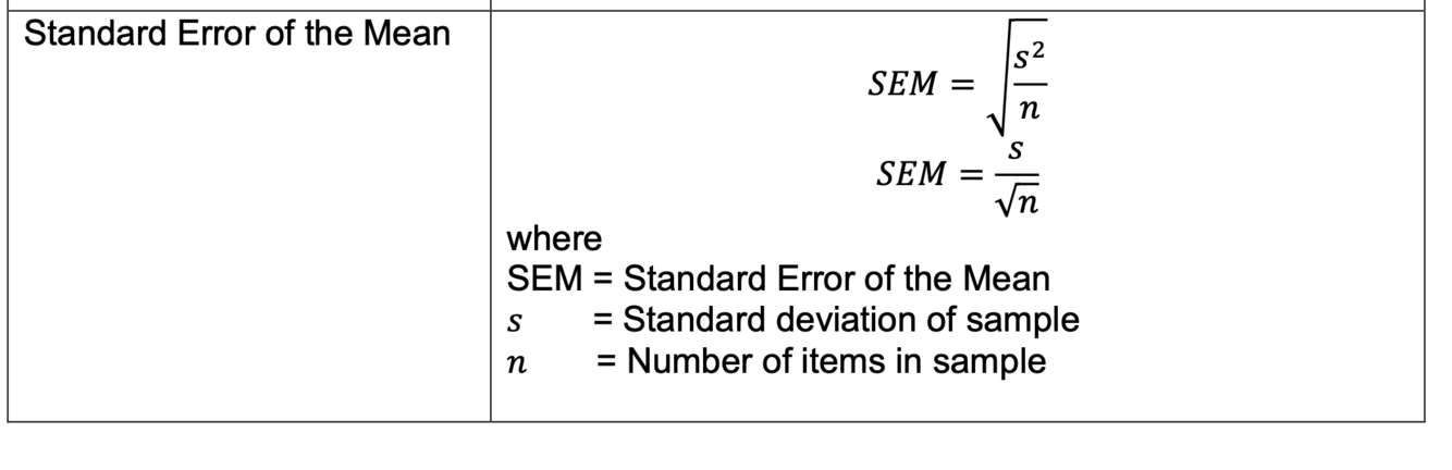 95% of sample means will fall within 1.96 SEM of the population mean –> pop mean within 1.96 SEM of the sample mean 95% of the time