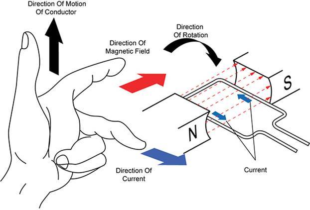 Using the left hand rule for generators, determine the direction of the field, the motion of the conductor, or the direction of the induced current.