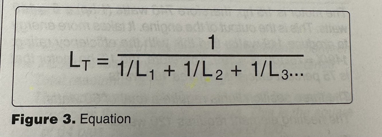 When inductors are connected in series in a circuit, the total inductance (where the magnetic fields of each inductor do not affect the others) is… (Note: Lt = L1 + L2 + L3…)