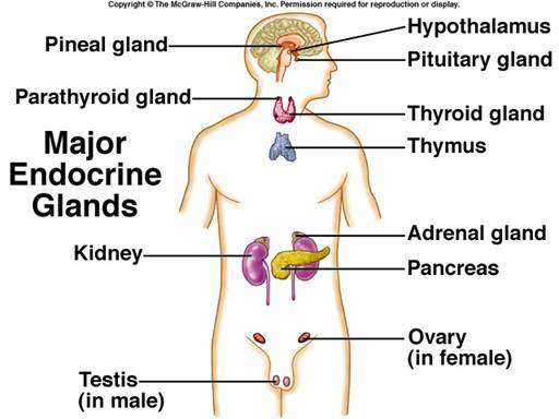 List the major endocrine glands