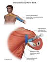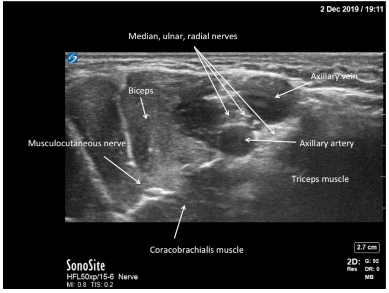 The axillary block is an upper extremity nerve block with an axillary approach but does not involve the axillary nerve. The block provides anesthesia to the median, radial, and ulnar nerves at the level of the branches. To provide more anesthetic coverage of the lateral forearm, the clinician gives supplementation to the musculocutaneous nerve. To provide more coverage of the medial upper arm, the clinician gives supplementation to the intercostobrachial nerve.