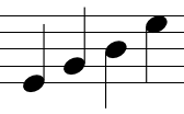 repeated pitch, ascending, ascending