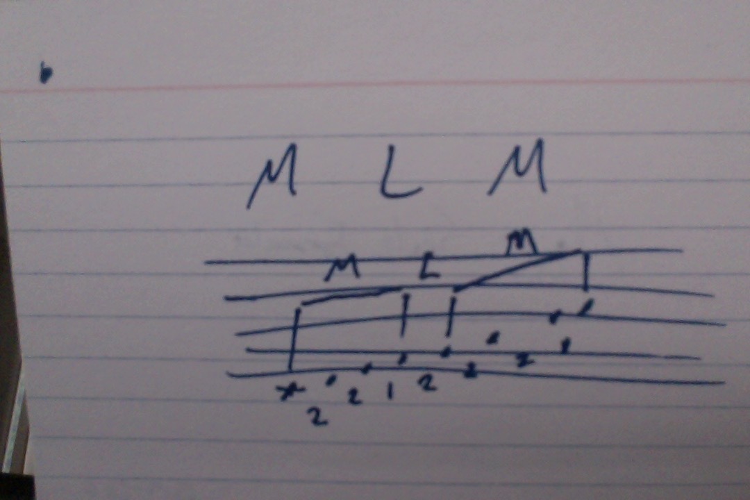 Theoretical construction consisting of 11 lines and ten spaces with middle C as the 6th line.