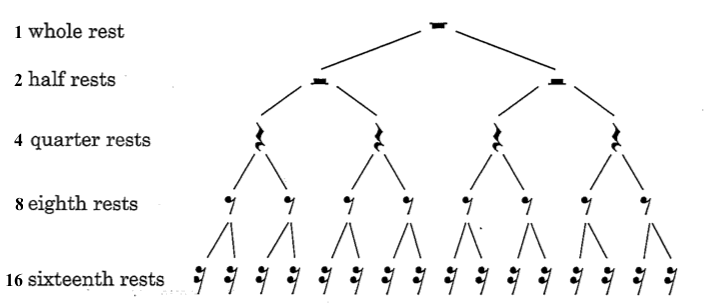 Describle the relationship of a quarter rest rhythm to the other rhythmic rest values.