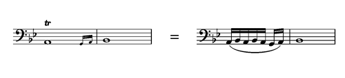 Example (below): A whole note Trill in 4/4 meter, followed by Nachschlag G and A, then Bflat whole note
