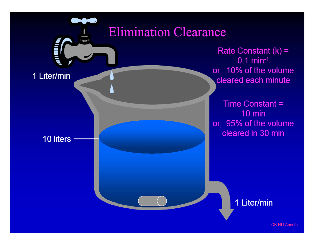 rate constant (k) = clearance (liters/min)/volume(liters)