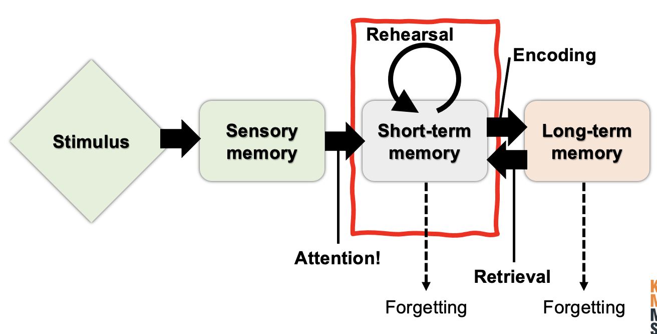 The working memory (short term memory) model (Baddeley & Hitch, 1974), which essentially is a model that shows how we are able to use working memory. It is important for reasoning, learning and comprehension. What is the phonological loop, which is part of the working memory mode?
