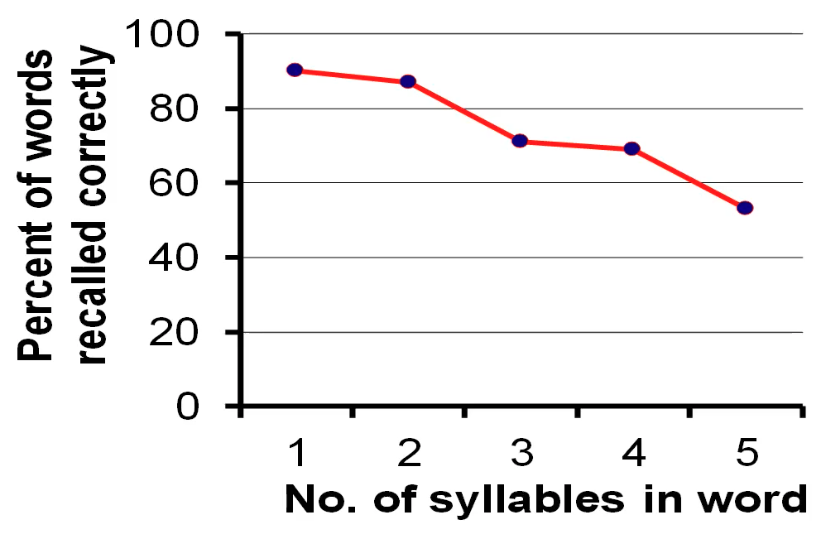 When we think about the phonological loop, there is evidence supporting it surrounding the ‘word length effect’. What does this mean in relation to the phonological loop?
