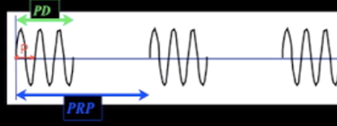 Usually expressed in microseconds (µs). PRP decreases as PRF increases. More pulses occur in a second, less time from one to the next.