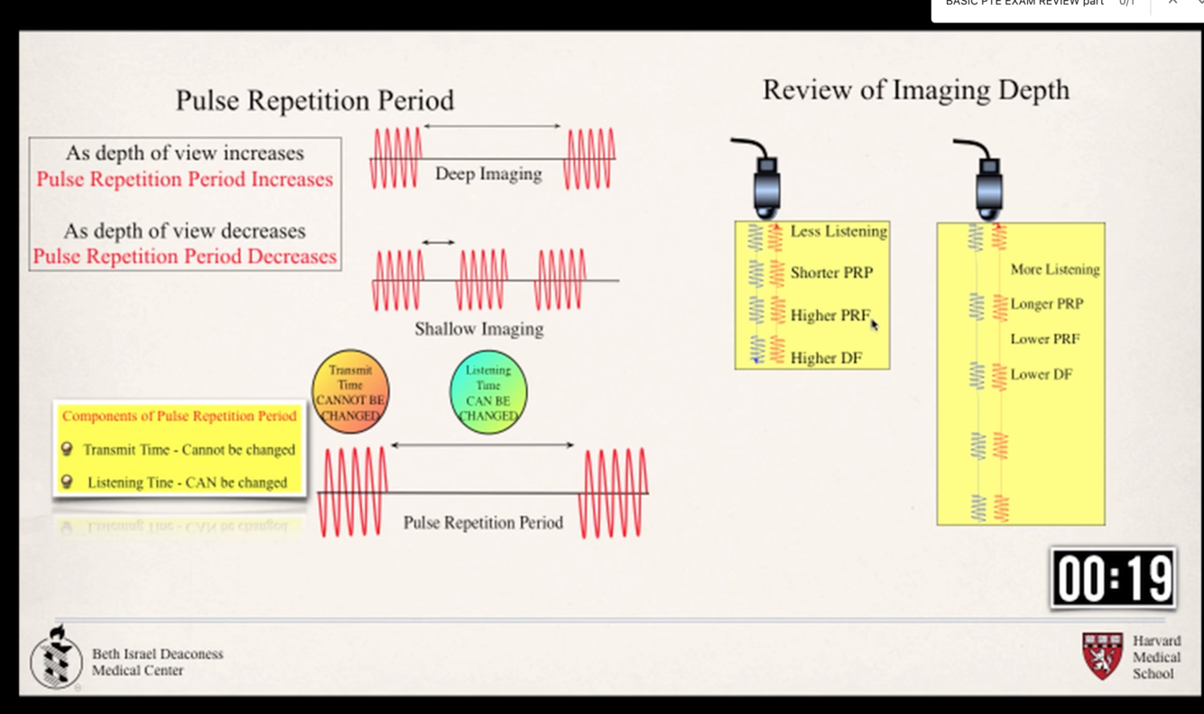 How does increasing the depth change the PRF (pulse repetition frequency)?
