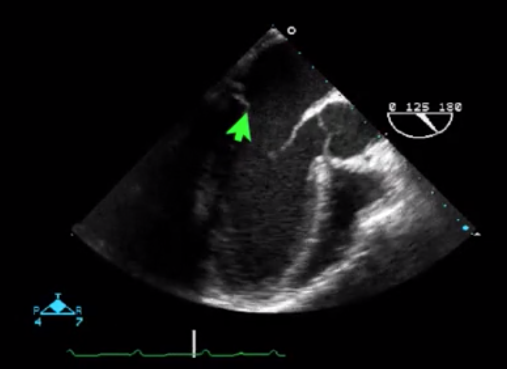 Insert the probe to the stomach, sector depth 12cm, angle 0°