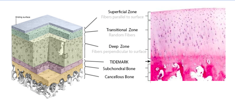 What are the zones of articular cartilage