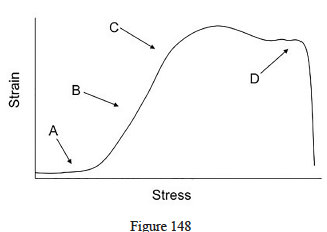 148. The characteristics of the region labelled A on the stress-strain curve of a ligment as shown in figure 148 predominantly are attributed to which molecule?