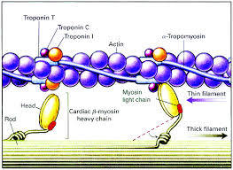 cardiac muscle: thick (myosin) and thin (actin) filaments
