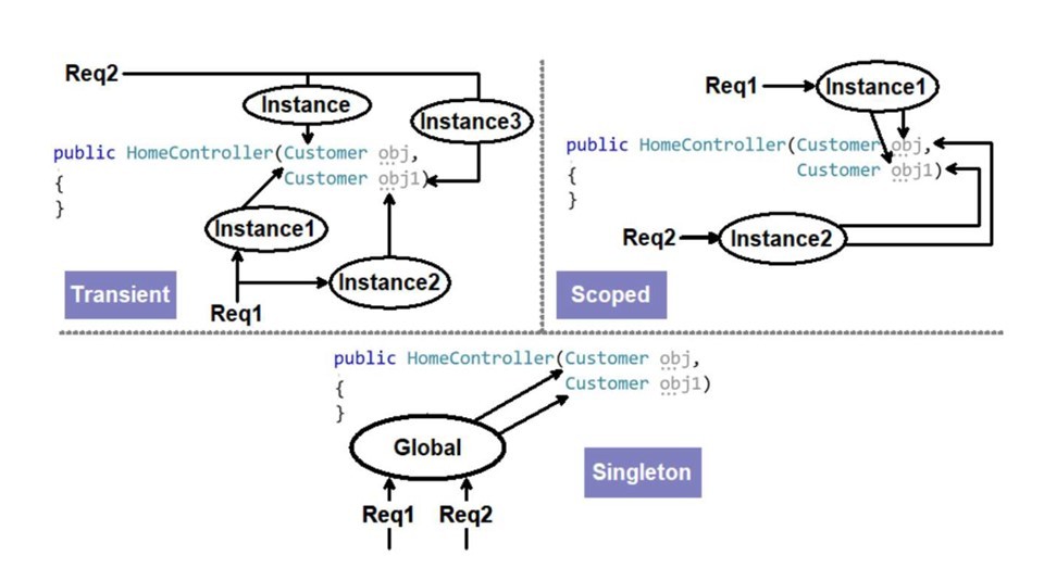 In case of singleton one big global instance created. For all request , for all Dependency injection same