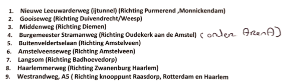 Bos en Lommerweg - Hoofdweg - Mercatorplein - Surinameplein - Amstelveenseweg - Stadionweg - Apollolaan - Churchillaan - Vrijheidslaan - Prins bernardplein