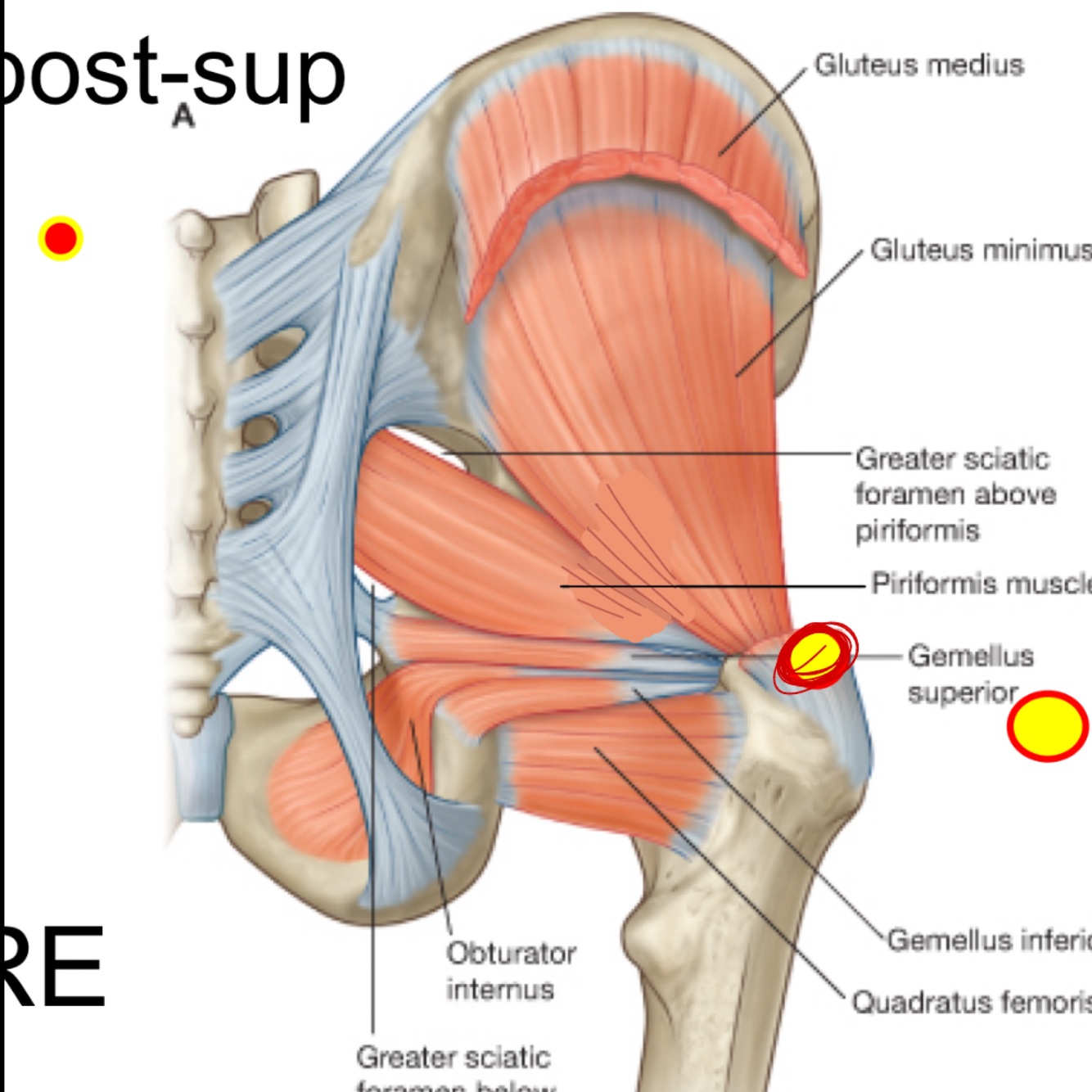 Patient sur le ventre, trouve ischion, roule vers face lat et amène pouces vers grand troc (céphalique et lat)