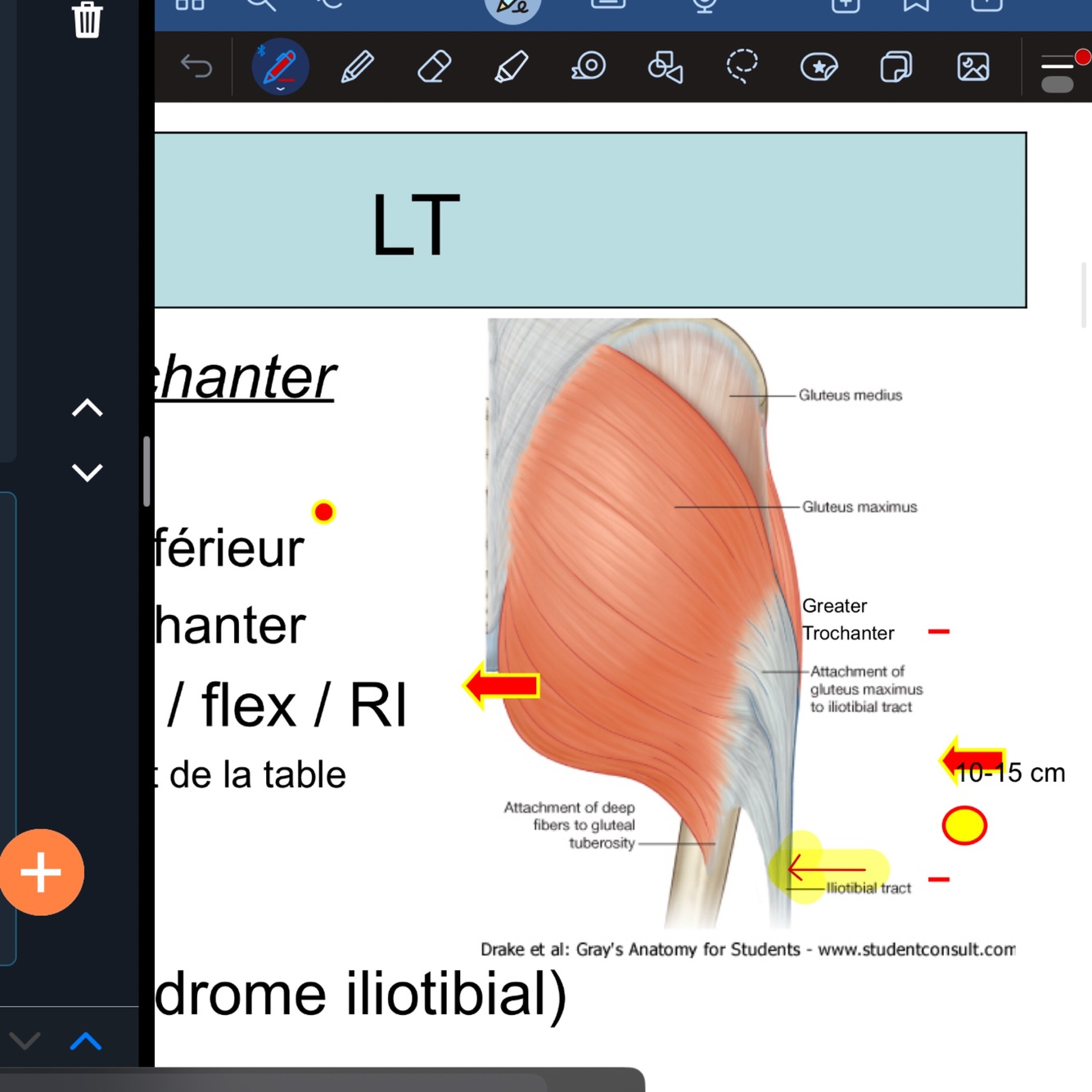10 à 15 cm en céphalique du plateau tibial, sur la bande IT.
