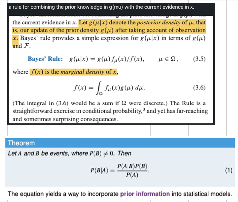 g(mu) represents prior information concerning the parameter , available to the statistician before the observation of x.
