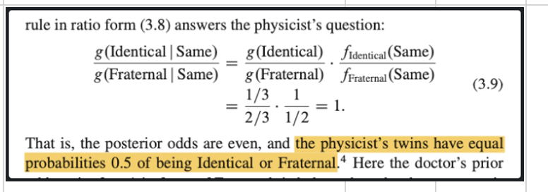 Identical or Fraternal with prior probability 1/3 or 2/3;