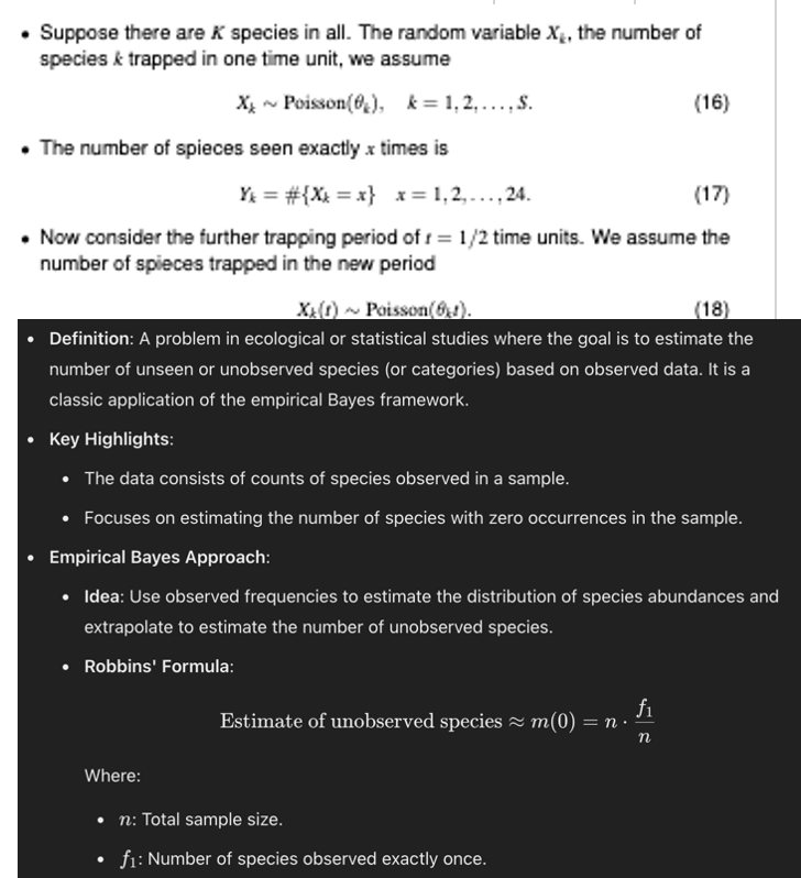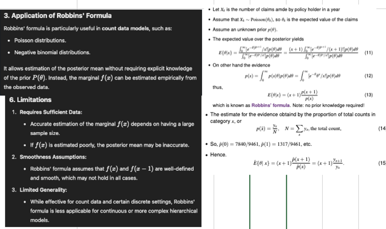 “Robbins’ formula is a key concept in Empirical Bayes (EB) methodology. It provides a way to estimate the posterior mean of a parameter in a Bayesian framework without specifying a prior distribution explicitly. Instead, the prior is estimated empirically from the data, which is especially useful in situations with repeated observations or multiple similar units