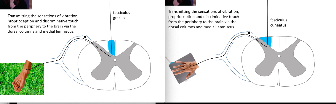 • Lower body / limb: fasiculus gracilis - more medial