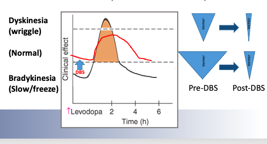 DBS directly impacts which two symptoms? [2]