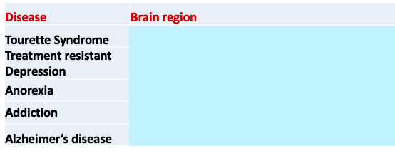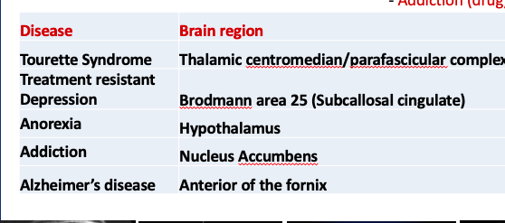 Brain regions for DBS