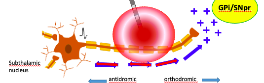 DBS in GPi can activate axon terminals causing extensive release of NTs (i.e. GABA & glutamate)
