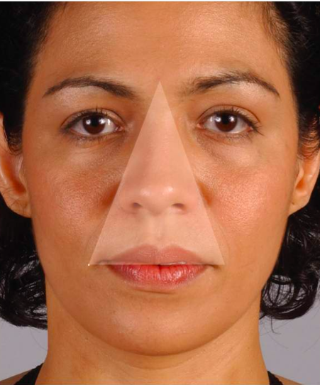 Where is the danger triangle of the face? [1]
