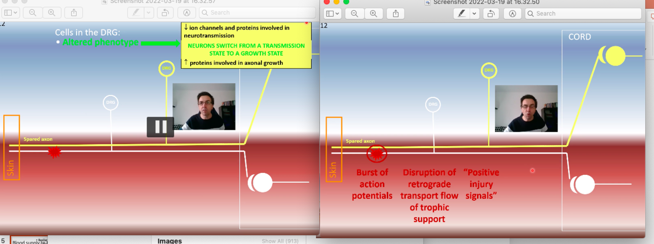 cells in the DRG alter their phenotype (switch from transmission of information state to growth state.