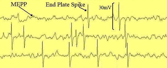 which two pieces of evidence suggest that AP starts with at NMJ in skeletal muscle? [2]