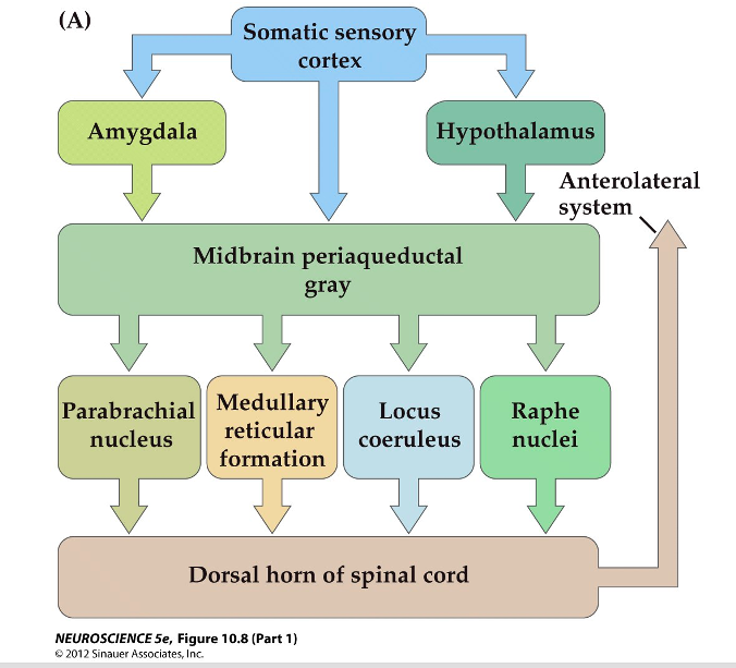 Serotonin (5HT) & Norepinephrine (NE); generally suppress sensations of normal bodily functions