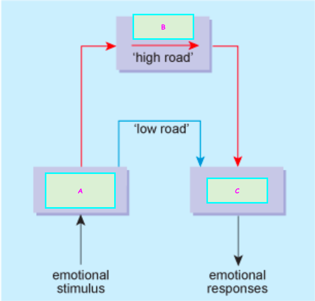 E.ear → thalamus → cortex → amygdala → emotional response.