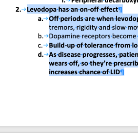 iii. Reduces the dose needed for Levodopa combinations to control symptoms and reducing the on/off effect